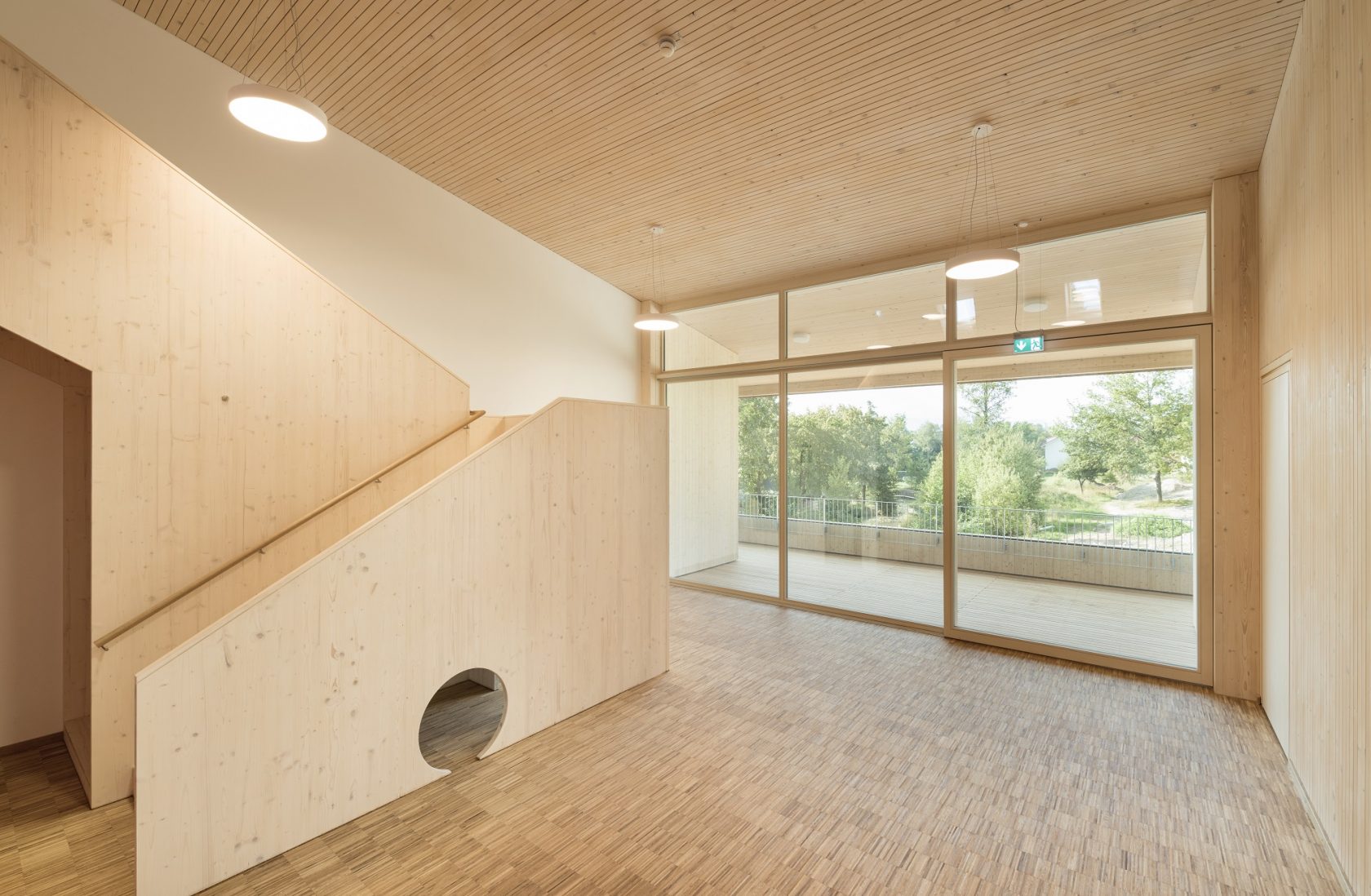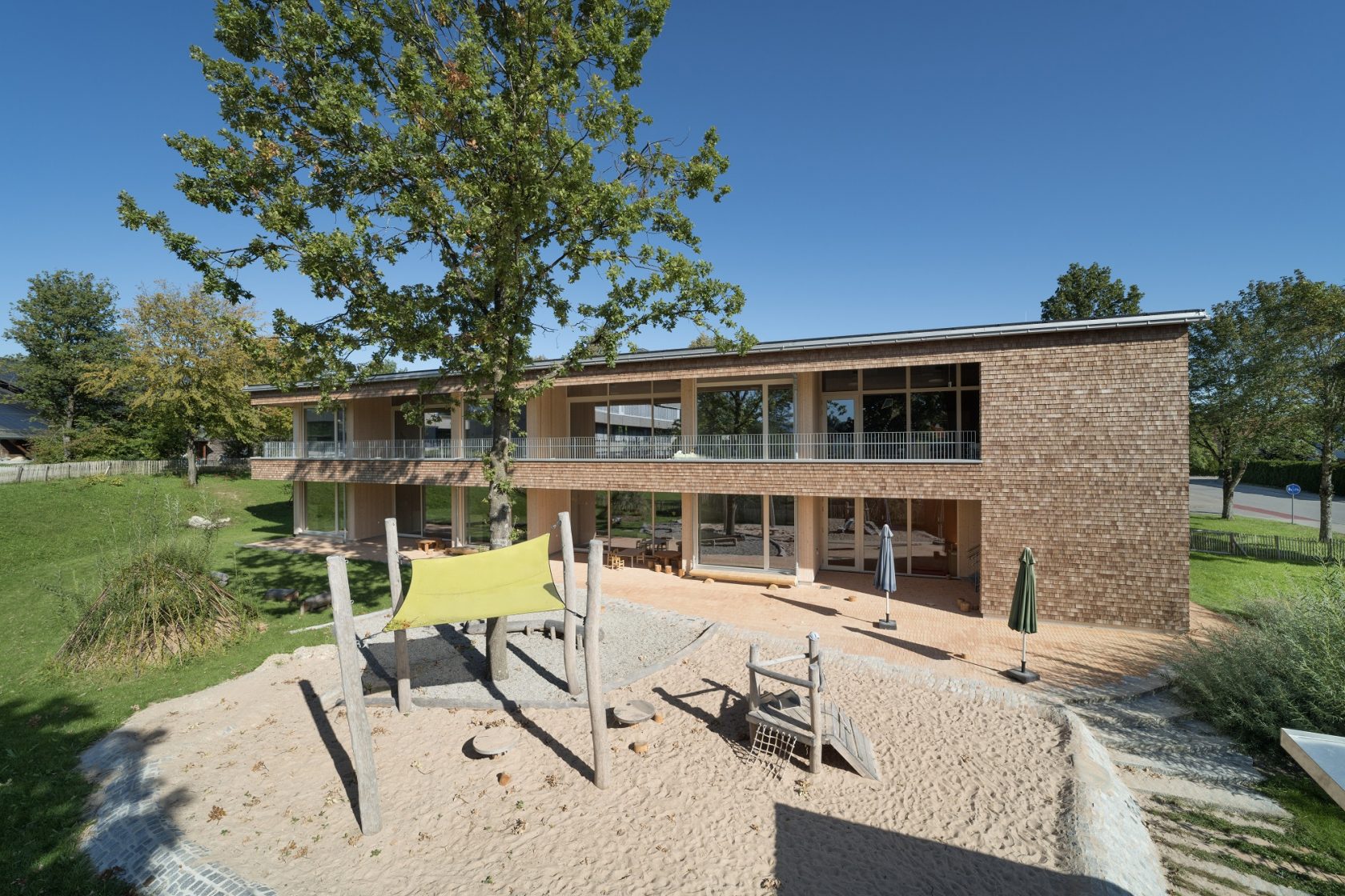 Die Kinderkrippe Waltenhofen erhielt eine besondere Anerkennung. Die 12-köpfige Jury – bestehend u. a. aus Architektinnen und Architekten, Expertinnen und Experten des nachhaltigen Bauens – lobte die konsequente Umsetzung der Holzbauweise und das realisierte Energiekonzept. Besonderes Augenmerk lag hier bei der Verwendung von gemeindeeigenem Holz und die dadurch resultierende regionale Wertschöpfung und kurzen Transportwege. Die Gemeinde wurde für ihren Einsatz mit der Übergabe des Preises an Bürgermeister Eckhard Harscher gewürdigt.
