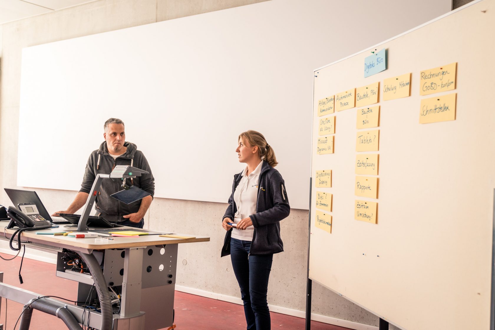 Die Gruppen sind so vielfältig wie die Ergebnisse. Vor Ort bauen wir gemeinsam schlagkräftige Teams für die Umsetzung von Prototypen. Ob Datenschnittstelle, Konfigurator, Plattform, Maschinenoptimierung oder gar zukunftsweisende Geschäftsmodelle in der Holzbranche.