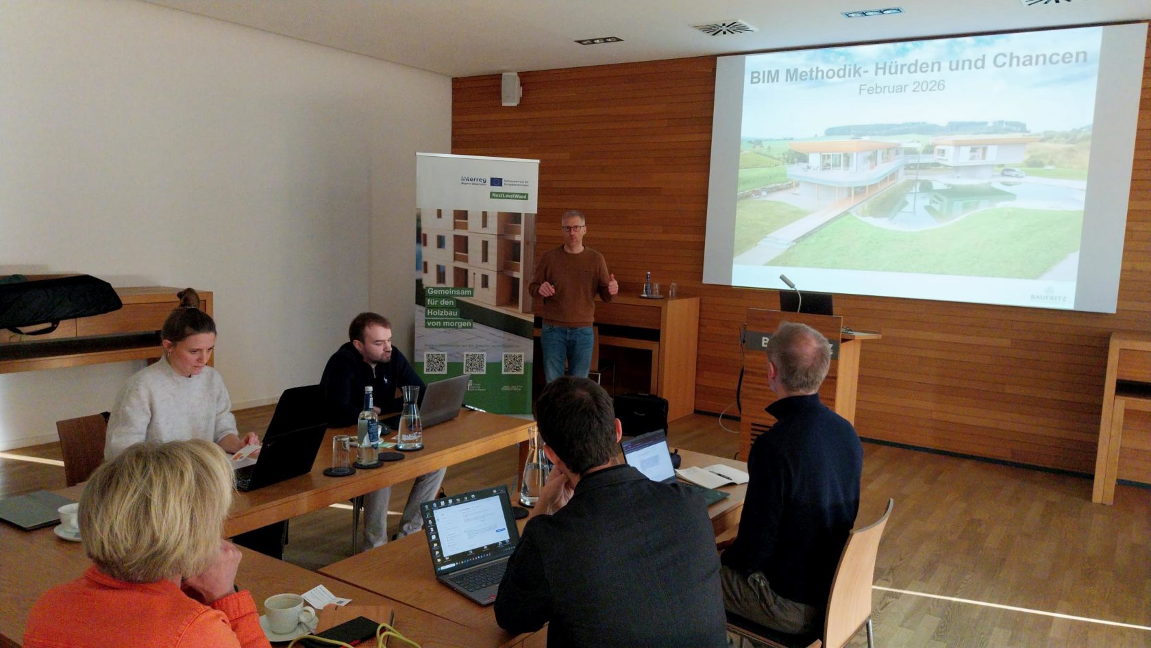 Eines der Projekte, an denen wir im Holzforum Allgäu e.V. aktuell arbeiten, ist das Interreg-Projekt NextLevelWood. Ziel ist, einen ganzheitlichen Ansatz zur Professionalisierung der Holzbauplanung zu entwickeln – zur Steigerung von Qualität, Innovation und Nachhaltigkeit im Bauwesen.