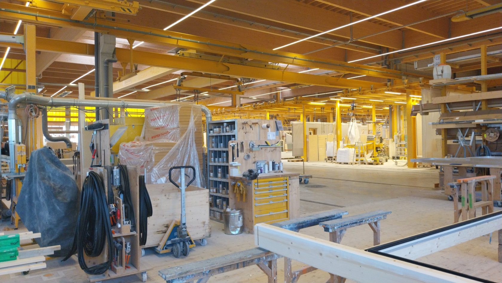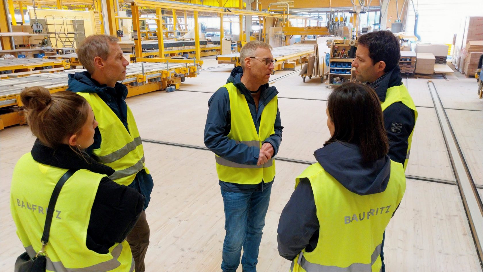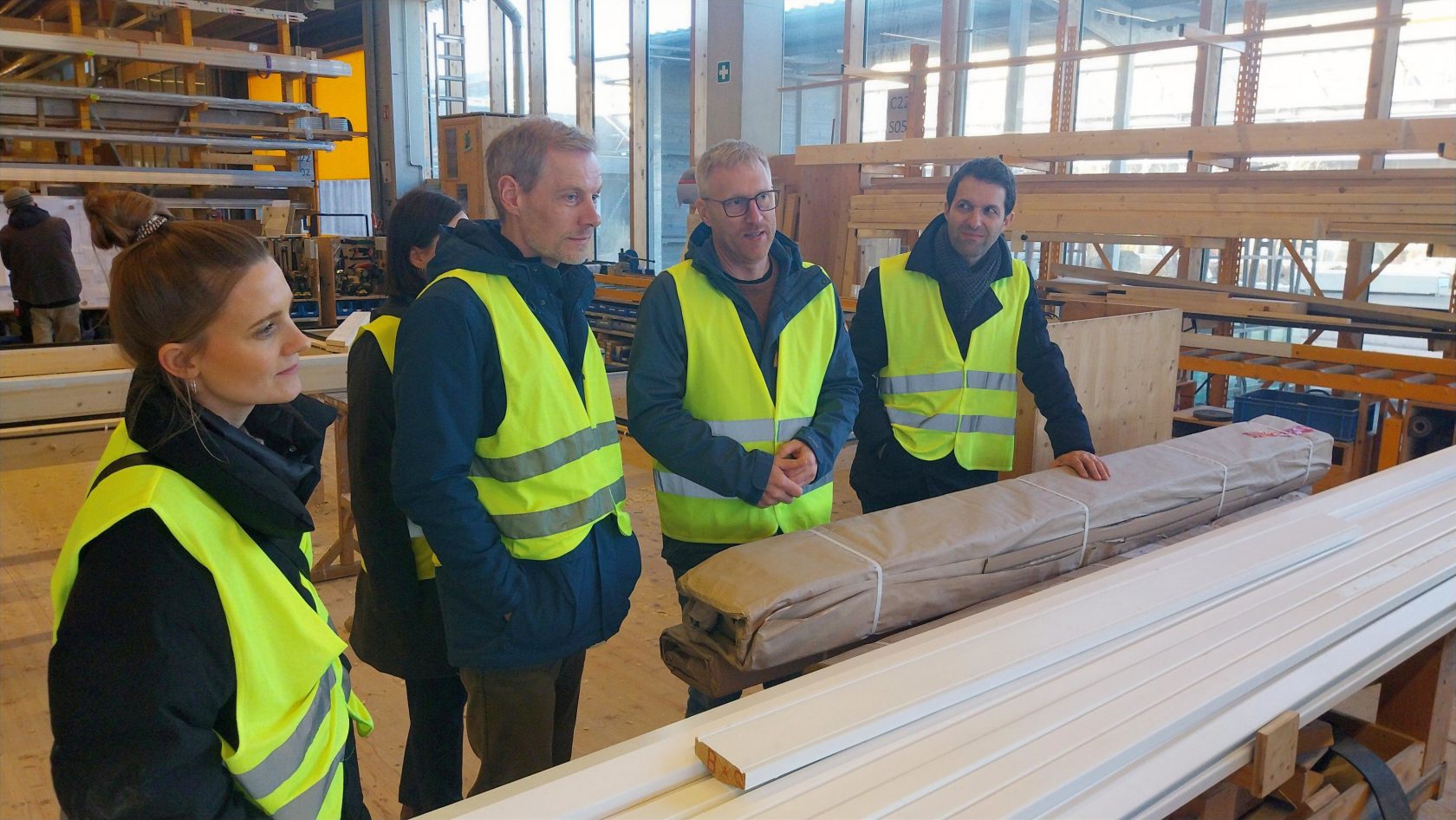 Um die aktuellen Herausforderungen der Holzbauplanung und der Holzbauweise in der Praxis noch besser zu verstehen, waren wir (zusammen mit unseren Projektpartnern Cluster-Initiative Forst und Holz in Bayern gGmbH sowie proHolz Tirol) zu Gast bei Bau-Fritz GmbH & Co. KG in Erkheim.