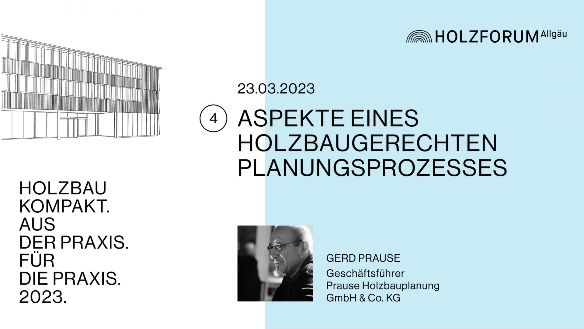 Gerd Prause, geboren 1958 in Aachen, machte nach dem Germanistik- und Philosophiestudium eine Ausbildung zum Zimmermeister und Betriebswirt des Handwerks. 1993 gründete er die Firma Prause Holzbauplanung. Nach Erweiterung arbeiten aktuell 29 IngenieurInnen und ZimmermeisterInnen im Büro. Seit 25 Jahren ist Gerd Prause als Dozent für Software und Planungsprozesse im Holzbau tätig.